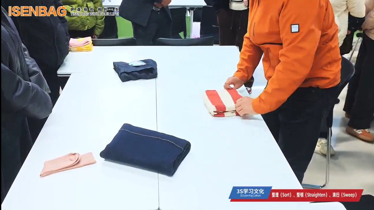 近期, 伊森箱包 组织全体员工开展 3S(整理、整顿、清扫)管理体系 学习与实践,每一处空间都在发生着看得见的改变,每一位员工都在实践中收获了深刻的感悟与成长。通过 3S 学习,我们深刻认识到:3S 不是简单的 “打扫卫生”,而是一套 “优化流程、消除浪费、保障品质” 的科学管理方法,更是伊森箱包 “匠心造包、精益求精” 理念的落地载体。未来,伊森箱包全体员工将把 3S 管理内化为工作本能,持续践行 “整理不松懈、整顿标准化、清扫常态化”,以秩序赋能生产效率,用规范保障产品品质,让 3S 成为推动企业高质量发展的内生动力,为打造更具竞争力的 ISEN 箱包品牌、服务全世界客户筑牢基础!