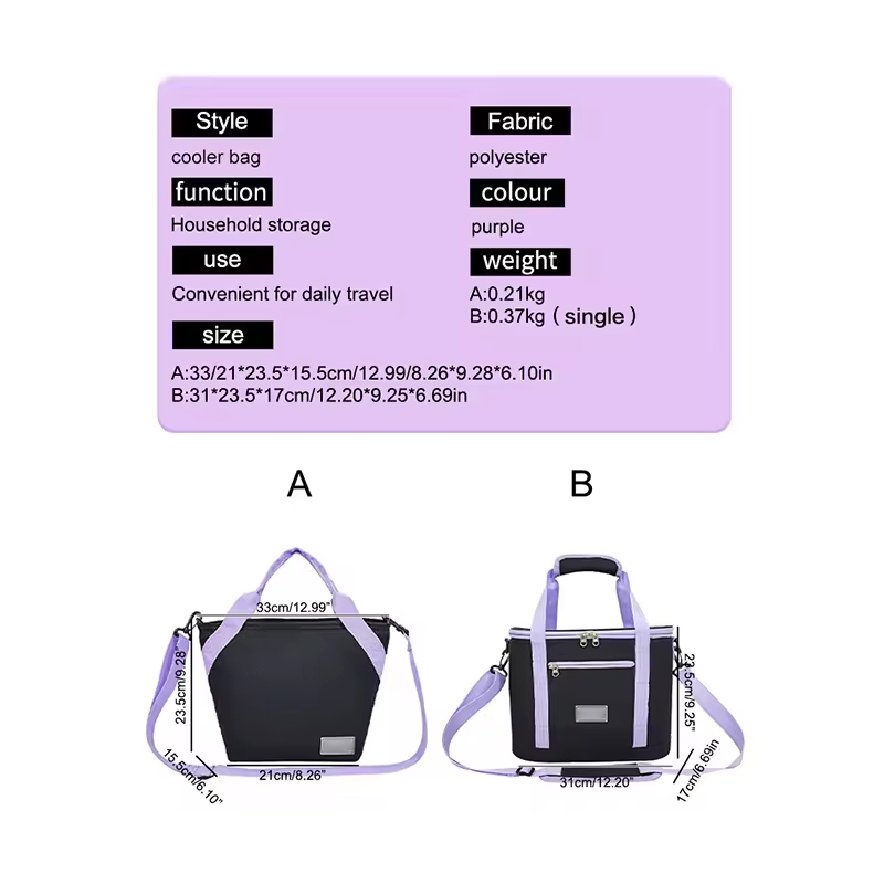 这款冷藏袋设计容量大,可存放各种物品,适合家庭出游、野餐、露营或日常使用。宽敞的内部空间可以轻松容纳餐食、零食、饮料和容器,帮助您将所有物品集中在一个地方而不会感到拥挤。