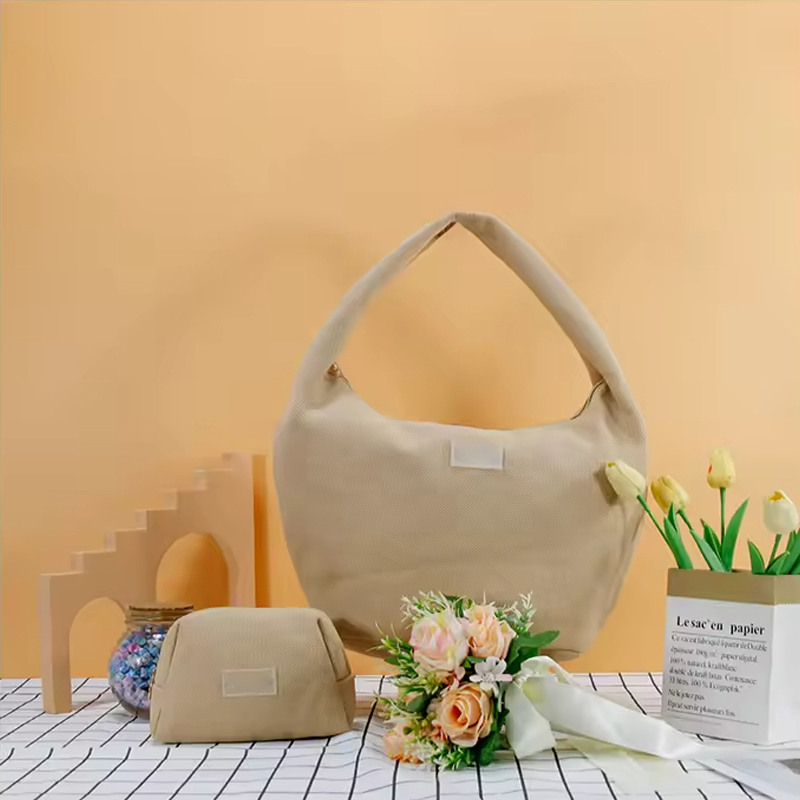 针织面料防水化妆包将现代外观与实用功能融为一体。其针织面料外观具有纹理和优雅的外观,适合日常使用和旅行。该设计重量轻但结构坚固,使其能够保持其形状,同时容纳各种个人物品。