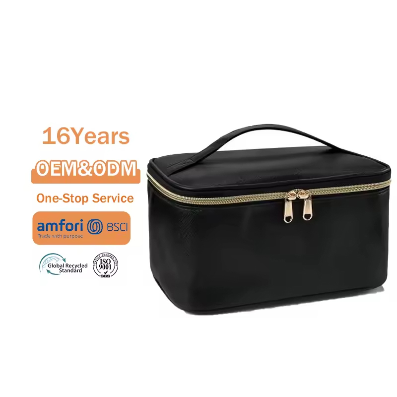 化妆包配有高品质 SBS 双拉链,确保安全、顺畅地闭合。无论您是旅行还是将物品存放在家中,拉链都能提供额外的耐用性,确保您的产品安全可靠。可靠的拉链使打开和关闭袋子变得容易,同时确保一切都保持在原位。