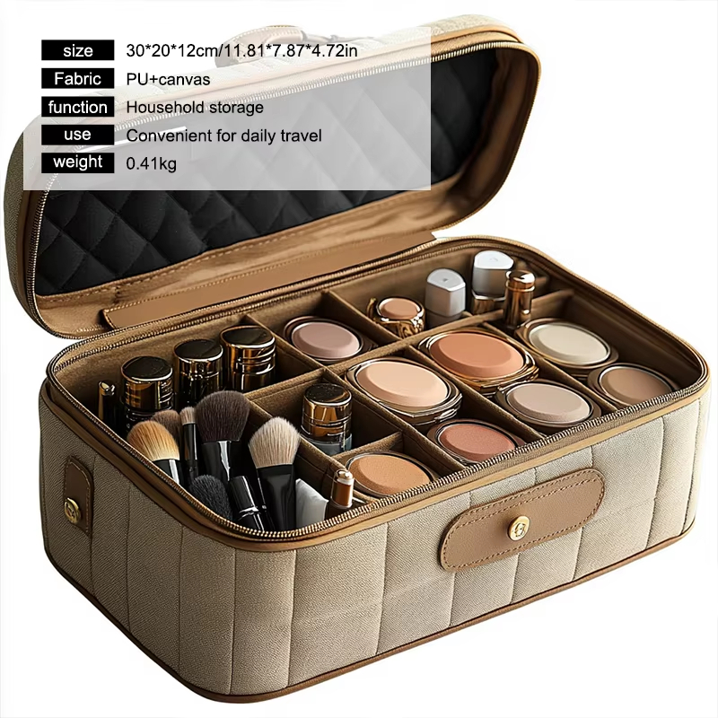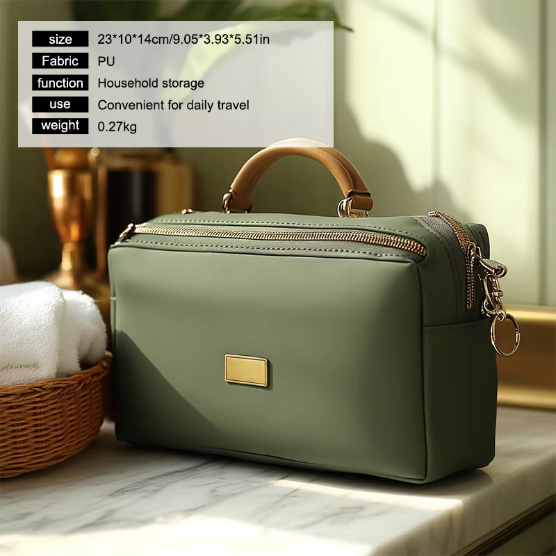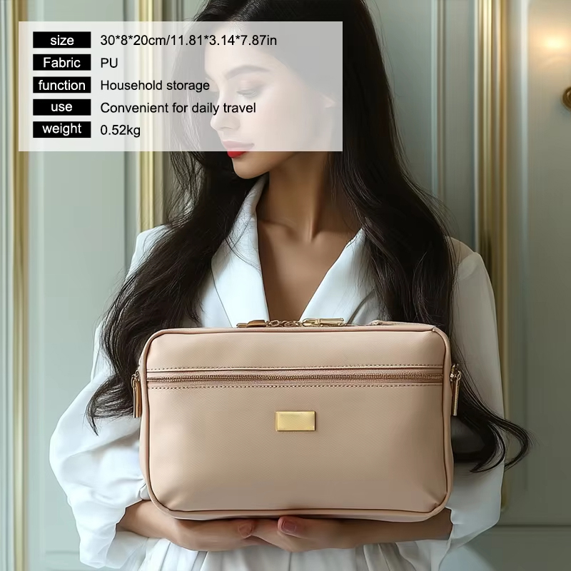 这款包采用优质 PU 皮革制成,兼具优雅和耐用性,为存放和携带化妆品、洗漱用品和其他必需品提供了一种时尚的方式。