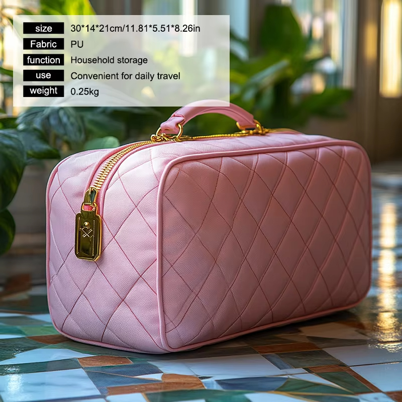 这款化妆包是日常使用的理想尺寸,足够大,可以容纳各种个人物品,但又足够小,可以轻松携带。其实用的设计使其易于维护 – 只需在需要时擦拭表面即可,确保袋子保持新鲜和崭新的外观。无论您是在家还是在旅行,这款洗漱用品储物袋都可以随时为您服务。