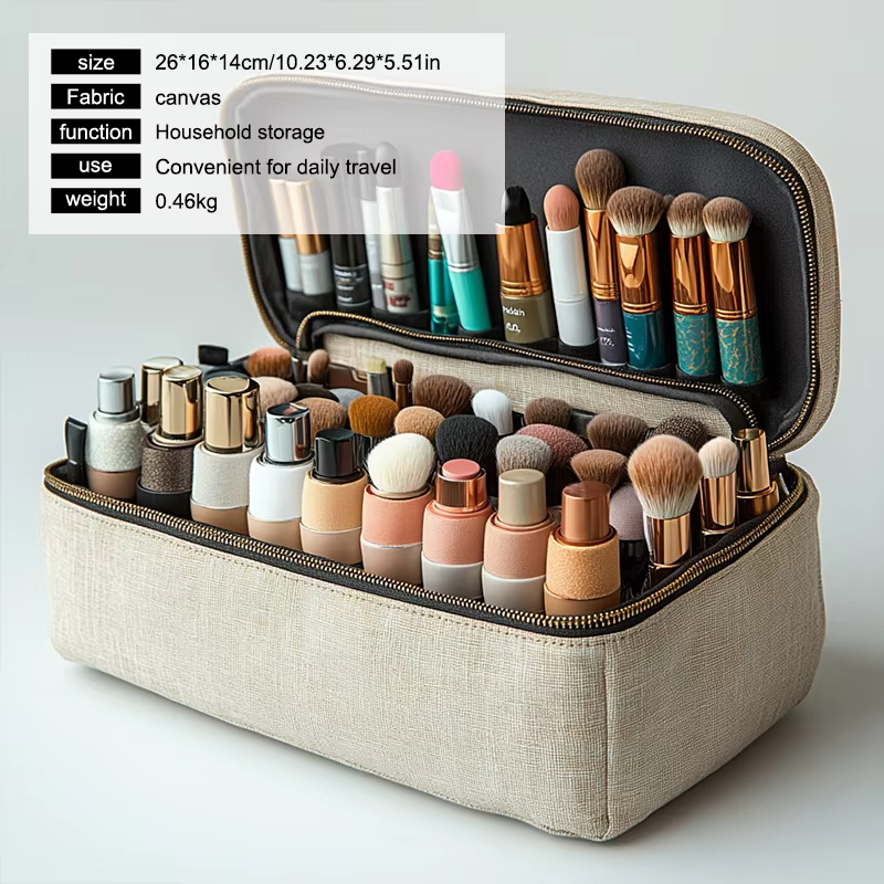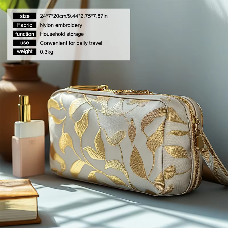 这款印花帆布洗漱用品收纳化妆包的主要特点之一是它能够让您的个人物品井井有条。无论您需要放置护肤品、化妆品还是美容工具,这款包都能为所有物品提供指定的空间。不再需要翻遍抽屉或袋子寻找那件物品。印花帆布化妆包提供了一种简单、高效的方式来存储和取用您的必需品。