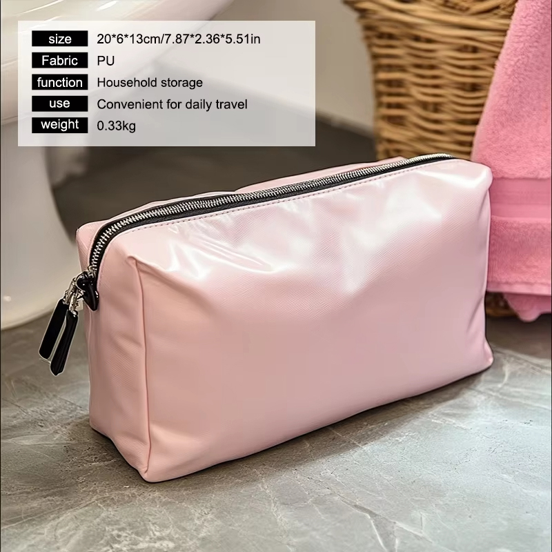 工厂 OEM ODM 定制化妆包不仅仅具有化妆品用途。它还可以用作洗漱包,存放牙刷、牙膏、剃须膏和其他个人护理必需品。它的多功能性使其成为家庭使用和旅行的绝佳选择。无论您是在家整理化妆品还是为旅行打包洗漱用品,这款包都能满足您的所有需求。