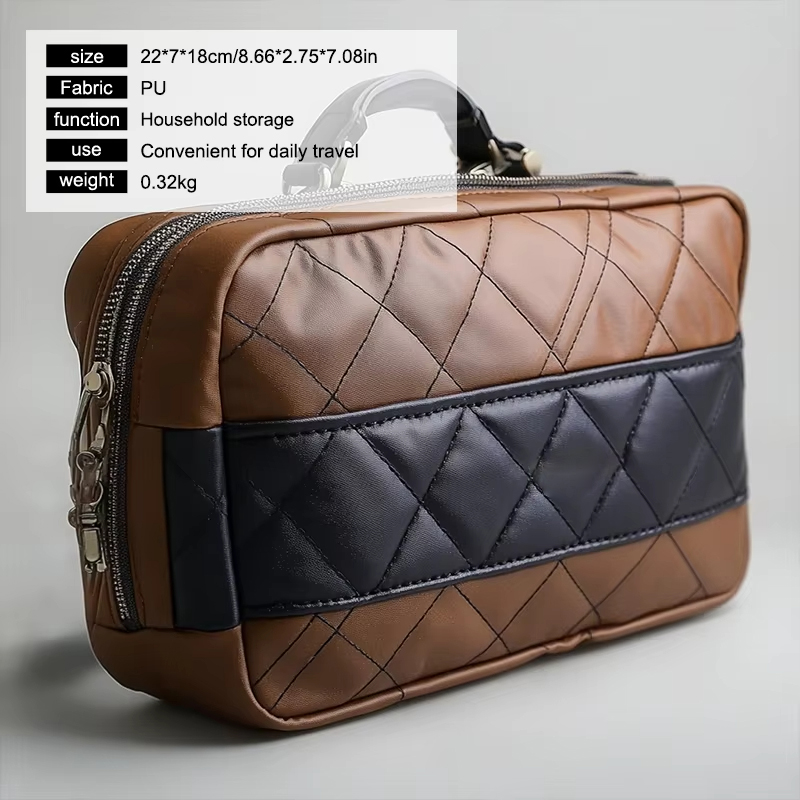 这款化妆包采用优质 PU(聚氨酯)面料制成,具有出色的耐用性和防水性。无论您存放化妆品、护肤品还是洗漱用品,这款包的防水特性可确保您的物品免受溢出、潮湿和其他环境因素的影响。此功能在旅行时特别有价值,因为它有助于防止可能损坏您的产品或其他物品的泄漏或事故。坚固的 PU 材料也使袋子易于清洁,确保即使频繁使用后仍保持崭新外观。