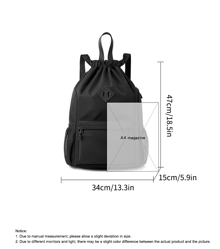 无论您是商务旅行、休闲旅行还是探险旅行,多种存储尺寸的旅行抽绳背包都适合各种活动。它的多功能性使其成为在海滩度过一天、徒步穿越山脉、去健身房,甚至漫步在新城市的理想选择。多种尺寸可供选择,确保您可以根据任何情况选择合适的尺寸,提供灵活性以满足您独特的旅行需求。
