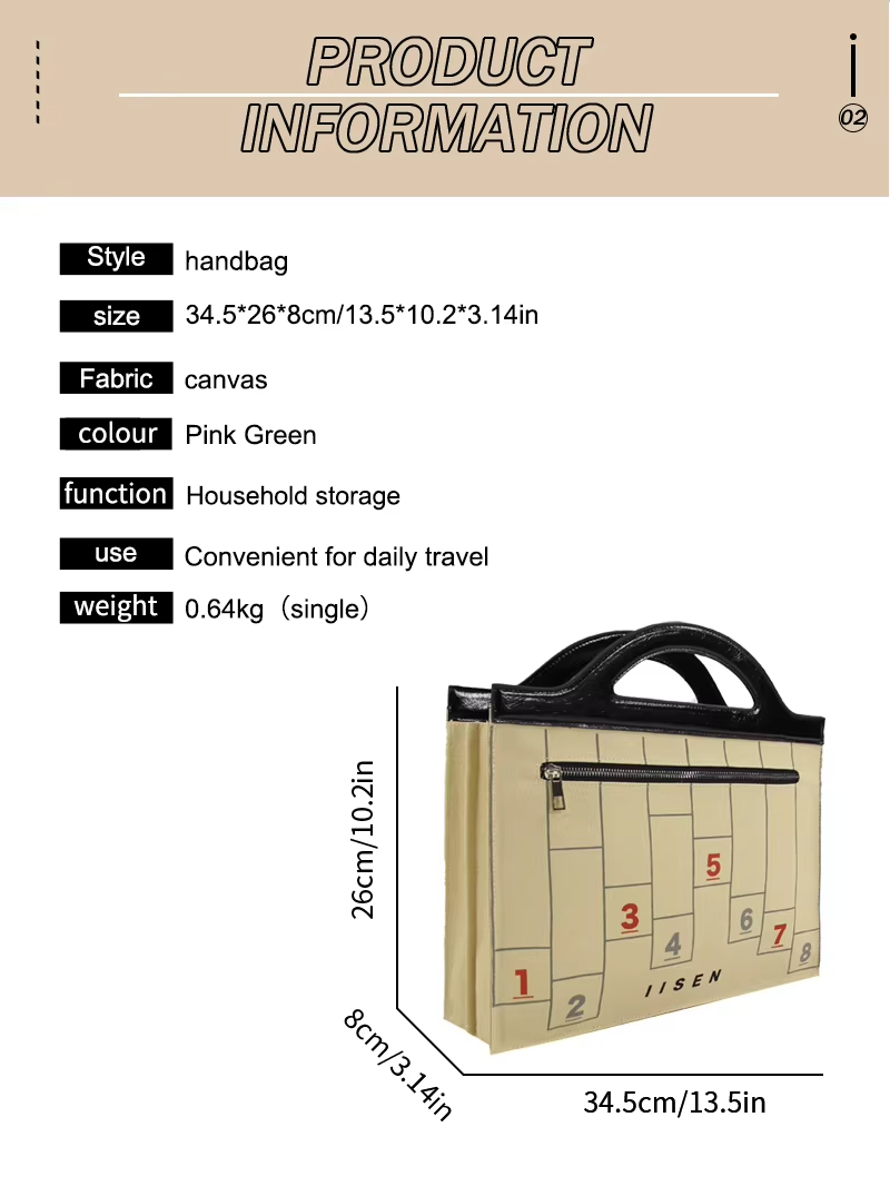 这款侧边拉链口袋购物袋让你的日常购物更加便利、有序。主袋空间宽敞,可装杂货、衣物或日常用品;侧边拉链口袋则可安全存放钥匙、钱包、手机等小物,让重要物品随手可取且不与大件混放。