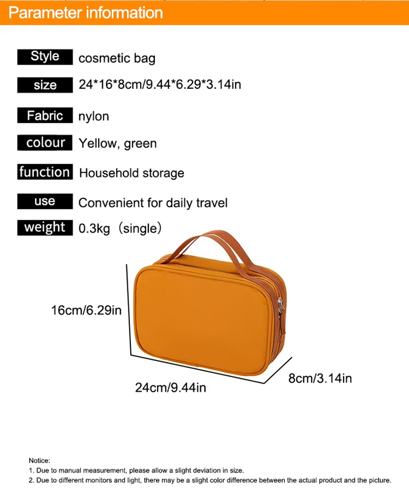 旅行化妆收纳洗漱包集大容量、多分区、防水面料、双拉链和便携手提于一身,为你提供一个实用、耐用又不失整洁感的旅行收纳方案。