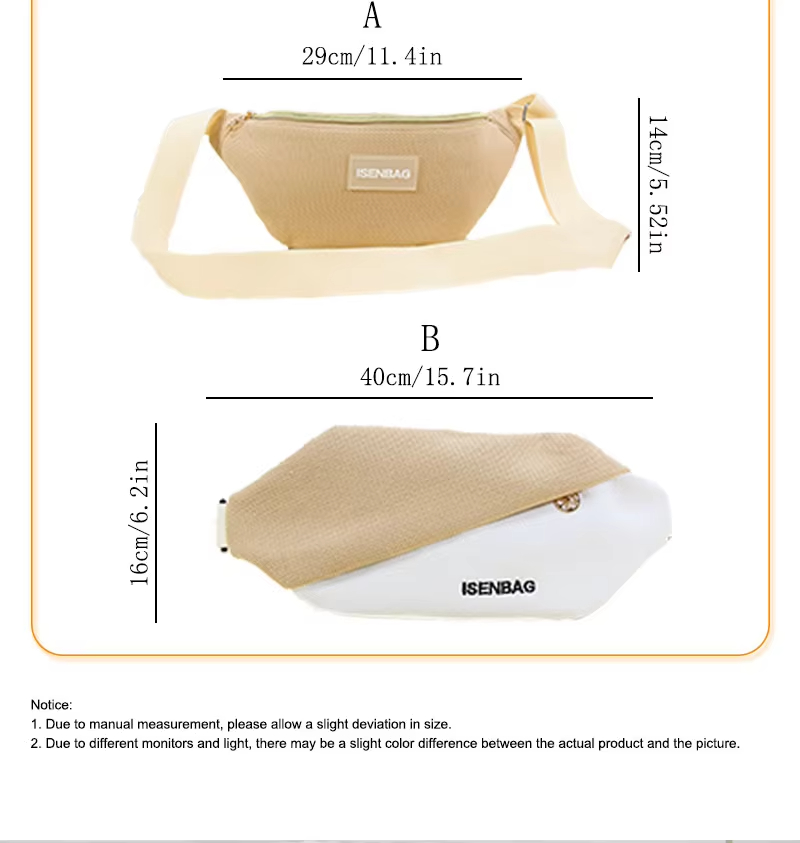 Crossbody 运动风格腰包专为日常使用和积极的生活方式而设计。它有多个隔层,可整齐地存放钥匙、钱包、手机和小配件等必需品。主拉链口袋可确保物品安全,而前口袋可方便取用常用物品。其轻质结构可全天舒适佩戴,且不会增加不必要的体积。